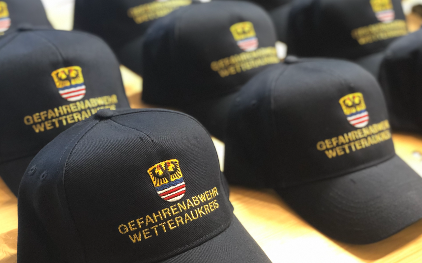Bestickte Dienstkleidung des Fachdienstes "Gesundheit und Gefahrenabwehr" des Wetteraukreises (z.B. Jacken, Sweatshirts, Poloshirts, T-Shirts, Basecaps).