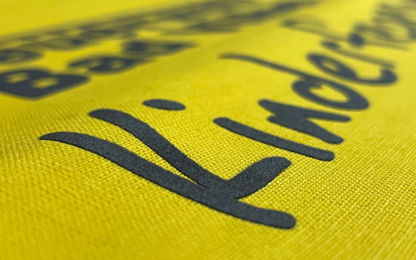 Baumwolltaschen veredelt mit Flockdruck. Flockfolien bieten eine samtige Oberfläche mit scharfen Kanten.